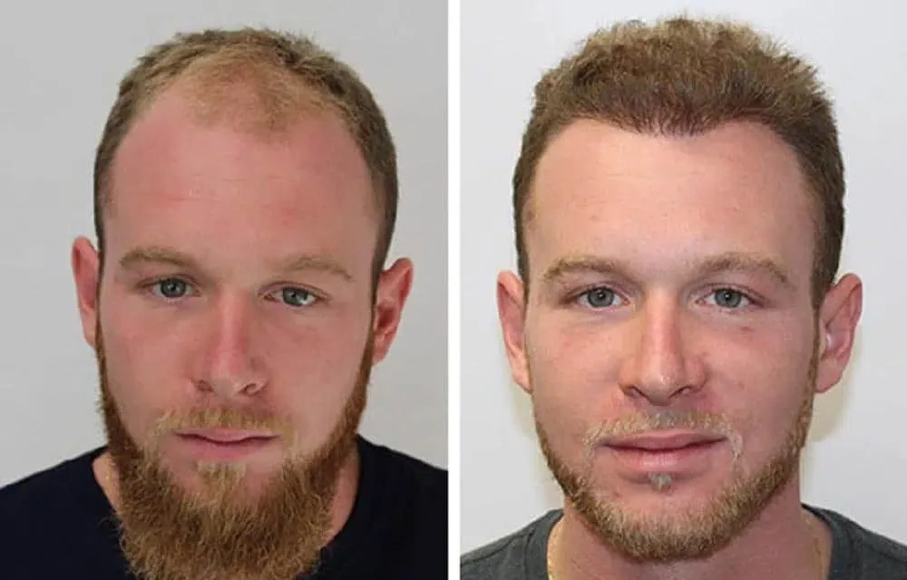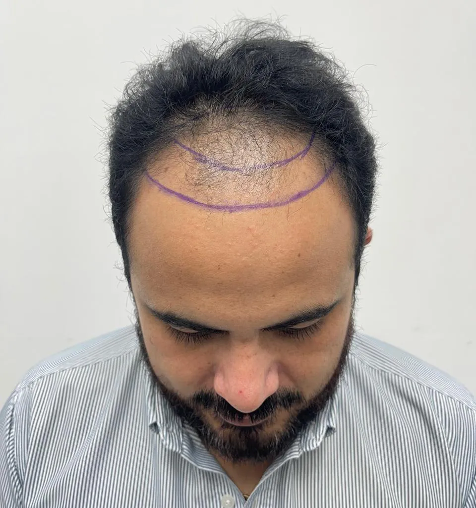 This video shows the patient immediately after surgery. The grafts are freshly placed, and the hairline design is clearly visible, giving a clear view of the work done during the procedure.